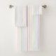 Cette serviette (ou ensemble de serviettes) est équipée d'un motif de fines rayures arc-en-ciel.