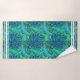 Un beau motif de grande oreille d'éléphant et des palmettes aux nuances de vert et du bleu sont affilés avec une rayure horizontale de trois barres dans le blanc. Ce sont idéaux pour des hôtels, des cabines et des loges de destination d'île offrant le logement chic aux invités.