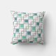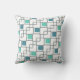 Coussin de coussin à motifs à motifs de carrés graphiques liés et carrés de couleur . Motif dessiné par Sarah Trett. Un salon moderne qui aurait l'air bien.