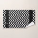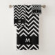 Motif chevron abstrait et monogramme sur serviettes de bain noires et blanches. Design simple et élégant pour tout le monde !