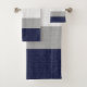 Serviette de bain minimaliste moderne bleu et gris crosshatch motif