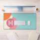 Beau bleu turquoise contemporain, vert menthe, rose vif, cercles géométriques couleur ivoire et demi-cercles design motif. Avec l'option de customiser ou de personnaliser avec un nom monogramme ou initial de votre choix. Design orné, élégant, élégant et éclectique pour la fashionista artistique de fantaisie, la diva de mode artistique, populaire branché, style d'art rétro vintage et abstrait amoureux de motifs géométriques numériques.