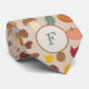 Un cravate avec un Motif d'automne incluant des feuilles d'érable, de hêtre, de chêne et de noisette, de champignon, de glacier, de citrouille, de châtaignes et de noix aux couleurs de l'automne et une lettre Monogramme. Un beau cadeau pour un homme qui aime la nature et la forêt.