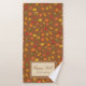 Célébrez la chute avec ce joli ensemble de serviettes de bain personnalisé. Serviettes de toilette contient votre nom de famille et le texte Happy Fall. L'arrière - plan est brun et a un motif coloré d'images d'automne — maïs, tournesol, feuille rouge et orange, foin et citrouille. Ce set de serviettes apporte une touche saisonnière chaleureuse à votre maison et fait un grand cadeau d'automne personnalisé, en particulier pour un ménage, douche nuptiale, ou mariage.