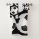 Serviette de bain avec motif de football en noir et blanc. Vous pouvez modifier la couleur de l'arrière - plan /ajouter monogramme, texte, logo. Du magasin de la conception d'alma. Un cadeau idéal pour les amateurs de football / joueurs / pour toute l'équipe.