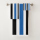 Bleu noir Vertical Stripes Motif Serviette de bain Set conçu par Nisha Prabhu. Cet ensemble de serviettes de bain Motif Blue Black Vertical Stripes est un complément luxueux à votre salle de bain. L'ensemble comprend serviette de bain, serviette, linge de toilette chacun avec un design moderne et élégant avec des rayures verticales dans les tons bleu et noir. Les rayures verticales apportent une touche d'élégance et d'intérêt visuel aux serviettes, ce qui en fait un élément distinctif dans la décoration de votre salle de bain. Avec leur design polyvalent, ces serviettes complètent une variété de styles de salle de bain, du contemporain au traditionnel. Les tons bleu et noir apportent une touche sophistiquée, créant une atmosphère de spa chez soi. Améliorez votre salle de bain avec ce Motif de serviettes de bain Blue Black Vertical Stripes La combinaison du style, du confort et de la durabilité fait de ces serviettes un must pour toute maison. Découvrez le luxe et profitez de la douceur et de l'absorbance de ces serviettes magnifiquement conçues.