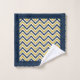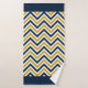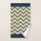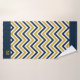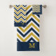Serviette de bain monogramme dressée avec un motif à chevrons tendance en bleu et jaune.