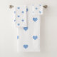 Serviette bleue et blanche à motifs cardiaques.