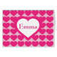 Cette carte comporte un motif répétitif de coeurs roses chauds superposés par un grand coeur blanc surligné de rose chaud, contenant un modèle texte. La carte est vide à l'intérieur en attendant vos sentiments manuscrits ou texte customisé.