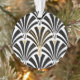 Reproduction de Digitals d'un classique, papier peint d'art déco, motif de fan - noircissez sur le blanc, embelli avec de l'or