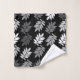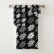 Silhouette de feuille d'arbre aîné dans un design de motif de surface avec des détails gris et blanc sur fond noir.