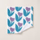 Ce motif floral abstrait présente un dessin simple de fleurs blanches en violet et bleu.