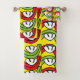Serviette de bain Motif à fleurs rouge vert ensemble. Epaule végétale rouge vert avec motif blanc fleur fantaisie sur arrière - plan jaune design pour amoureux du jardinage, amoureux plante.