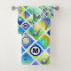 Un design original et gai avec un motif en tuiles avec toutes sortes d'images de golf dans des couleurs estivales vibrantes de bleu, vert et jaune. Vous pouvez ajouter votre choix initial en cliquant sur le lien personnalisé. Un cadeau amusant pour les amateurs de golf