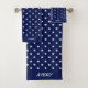 Elégant motif en étoile blanche sur le kit de serviettes bleu marine. Le texte du nom peut être personnalisé.