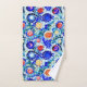 Motif sans couture en mosaïque colorée inspirée de l'oeuvre de l'architecte catalan Antoni Gaudi, avec des pièces de tuiles multicolores rondes bleues, rouges et jaunes dans différentes nuances sur un arrière - plan bleu laque clair carrelé. Un cadeau parfait pour les amoureux du modernisme catalan et de Barcelone.