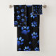 Parties scintillant bleue chien patte motif sur arrière - plan noir. Sachez que vous avez une photo !
