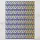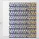 Motif de plume de paon stylisé et fantaisiste dessiné à la main en bleu et or.