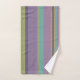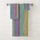Ce joli design présente une motif rayée aux couleurs tendance turquoise, prune, orange et vert olive.
