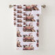 Serviette avec illustration cool. Un moteur de train rose mignon et capricieux. Des bouffées de fumée rose sortent de sa cheminée.