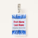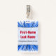 Les caractéristiques de conception ce d'insigne un motif avec des lignes ont coloré de diverses nuances de bleu éclatant d'un point central. Il comporte également un nom fait sur commande en texte coloré par rouge dans une zone pâle blanche. Il y a également un message personnalisable sous le nom de ce pourrait montrer l'information telle qu'une fonction, ou une profession, ou des affaires/nom de la société. [~Z0000176]