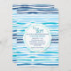 Un charmant motif horizontal de bleus avec blanc avec une décalcomanie ronde centrale qui tient vos détails de fête. Parfait pour un baby shower garçon.<a href="http://www.freepik.com/free-vector/watercolor-abstract-summer-pattern-background_1196817.htm">Conçu par Freepik</a>). <br/>() La carte est facile à customiser avec votre libellé, police, couleur de police, options de forme de papier et le choix de six types de papier.<br/>() Pas exactement ce que vous cherchez? Tous nos produits peuvent être conçus sur mesure pour répondre à vos besoins sans frais supplémentaires.<br/>() Il suffit de nous contacter à askcottonlamb@gmail.com .<br/>() Coordination des produits disponibles : Il suffit de nous demander!