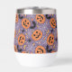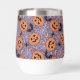 Ce design est doté d'un motif d'Halloween dynamique avec un design ludique et mignon. Le motif présente des lanternes jack-o'-lanternes orange vif aux diverses expressions joyeuses et conviviales. Ces citrouilles sont entourés d'un arrière - plan violet rempli de toiles d'araignées blanches, de chauves-souris noires, de lunes de croissant, d'étoiles, de maïs bonbon et de petites araignées. Le thème général est amusant et festif, ce qui le rend parfait pour une décoration d'Halloween légère ou un design thématique. La palette de couleurs est un mélange de couleurs traditionnelles d'Halloween (orange, noir et violet) avec des touches de blanc et de jaune pour le contraste.