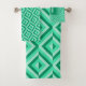 Décorez votre salle de bain avec ce Monogram Green Trois Tone Diamond Serviette Motif. Il dispose d'un motif en diamant géométrique dans trois tons de vert avec une initiale en vert clair contre un carré vert foncé sur le linge. Personnalisez-le avec votre initial. Une excellente idée de cadeau pour les nouveaux propriétaires.