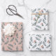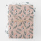 Cet ensemble de feuilles d'emballage cadeau jolies présente un motif aquarelle de feuilles vertes et d'un petit oiseau d'hiver. Deux feuilles de papier ont l'image imprimée sur fond blanc, tandis que la troisième feuille a la même image sur fond gris clair orangé. Ensemble, ils créent un bel étalage de paquets cadeaux contrastés, approprié pour la saison des fêtes, les anniversaires, les mariages, les douches, ou toute occasion à tout moment.