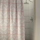 Un rideau de douche à motif de drapeau du Royaume-Uni dans des teintes délicates de rose - millénaire - mon ombrage fave.