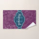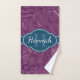 Motif en marbre violet foncé et clair dans l'arrière - plan, élégante et tendance, surmontée d'une étiquette bleue blanche et turquoise avec un nom personnalisable et un modèle monogramme.