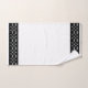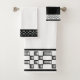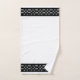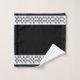 Les bordures de cet ensemble de serviettes unique et élégant sont aménagées de motifs avec des rectangles et des carrés qui ressemblent à du métal argenté ou du chrome. La serviette de bain et la serviette de bain sont blanches, et le linge de toilette est noir avec une bordure blanche. Ce design industriel moderne apportera du raffinement à tout décor de salle de bain.
