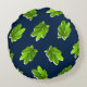 Ce Coussin Rond présente un motif original de ZoeSPEAK, réalisé à partir de la photo originale de Zoe de feuilles des tropiques. Le plante, Senna alata, est souvent appelé le chandelier de l’Empereur. Les délicats amas de feuilles vertes sont éparpillés dans un arrière - plan bleu profond, avec une humeur des îles.