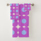 Cet élégant ensemble de serviettes de bain dispose d'un motif de fleurs rétro amusant en violet et bleu.