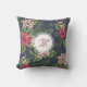 Coussin carré personnalisé : motif lisse et frais composé de fleurs d'hibiscus rouges et de feuilles sur arrière - plan foncé. Monogramme personnalisé inclus en forme ronde. Vous pouvez facilement modifier le texte (police, couleur, taille et position) en cliquant sur le bouton personnaliser. Housse couette, tasse, serviette de bain et plus encore... N'oubliez pas toute la collection de motifs floraux vintages au monogramme.