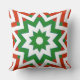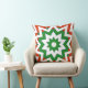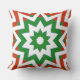 Ce design unique présente un motif géométrique de formes rouges et vertes sur un arrière - plan blanc, et est imprimé de chaque côté de coussin. Certaines formes ressemblent à des motifs d'étoiles. C'est un grand accent pour la période des fêtes de Noël.