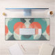 Une abstraite géométrique sans coutures, composée de cercles translucides, de carrés et de triangles superposés, disposés dans une palette harmonieuse de turquoise, corail, ivoire et charbon de bois. Le design présente une symétrie équilibrée avec des ombres de chute subtiles, créant un visuel doux et élégant parfait pour les arrière - plans, la décoration moderne ou des projets graphiques sophistiqués.
