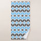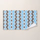 Ces serviettes de bain sont ornées d'un motif en os de hareng géométrique coloré en bleu, gris foncé et blanc.