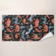 Des animaux de la forêt illustrés en rouge et bleu, y compris des renards, des ours, des hiboux et des cerfs, sont ornés de motifs complexes sur fond noir.