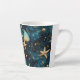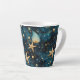 Une tasse en latte avec un élégant motif bleu avec étoiles de mer, représentant l'océan.