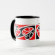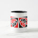 Motif maori traditionnel de Kowhaiwhai. Ces motifs rouges, blancs et noirs étaient les plus employés souvent sur la faîtière (tahu ou tahuhu) et des combles (heke) d'un lieu de réunion maori.