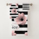 Des rayures noires et blanches et de grandes fleurs roses délicates contrastent et donnent l'impression d'être douces