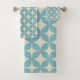 Cet élégant ensemble de serviettes de bain dispose d'un simple motif moderne du milieu du siècle de formes en bleu turquoise et crème. Super idée cadeau.