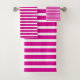 Cet ensemble de 3 serviettes de bains est doté d'un motif moderne et simple rose chaud et à rayures blanches.