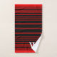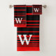 Ensemble de serviettes de bain à motif monogramme à rayures rouges et noires élégant. Ensemble de serviettes de bain à motif à rayures colorées personnalisé.