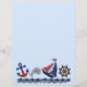 Illustration graphique du motif nautique du voilier, de la roue, de l'ancre et de la baleine sur l'eau.
