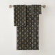 Ensemble de serviettes de bains moderne en tissu Damas noir et or.