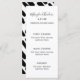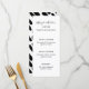 Carte de menu Mariage à script moderne noir et blanc avec dos de carte à motif.