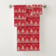Bonnes fêtes avec cette conception tricotée par Noël de fête avec un motif nordique confortable rouge et blanc avec des pins de forêt.