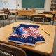 Un cahier à spirale audacieux présentant un drapeau américain ondulé avec des confettis festifs rouges, blancs et bleus. Parfait pour l'école, la journalisation ou les cadeaux patriotiques.